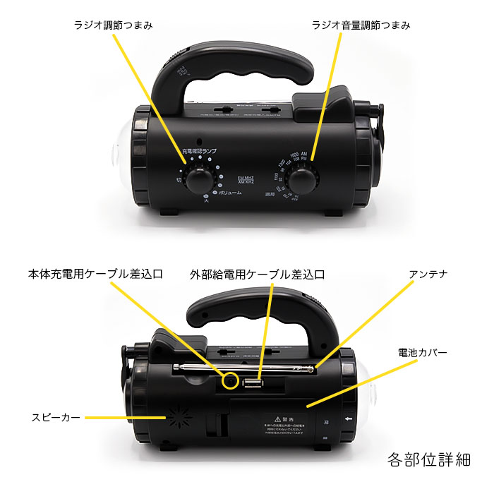 品名:乾電池式/充電池式/手回し充電ラジオライト