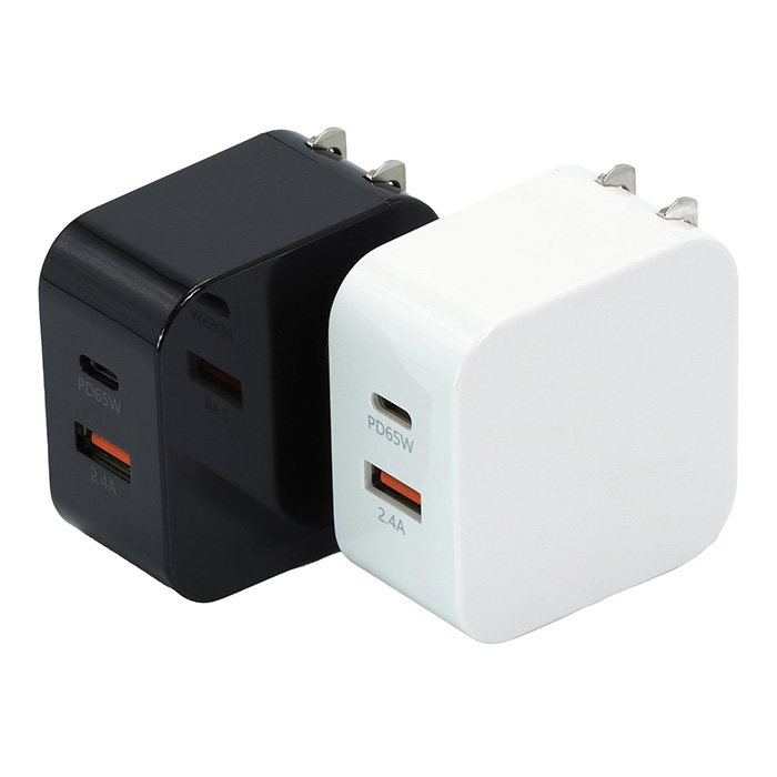 USB充電器65W「SK-CH1A1CPD65WH/BK」はGaN(窒化ガリウム)を採用し、小型軽量で高出力65Wの充電器です。