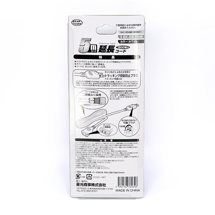 | JANコード | 1m SK-EB01W: 4562169760615 2m SK-EB02W: 4562169760622 3m SK-EB03W: 4562169760639 5m SK-EB05W: 4562169760646 |