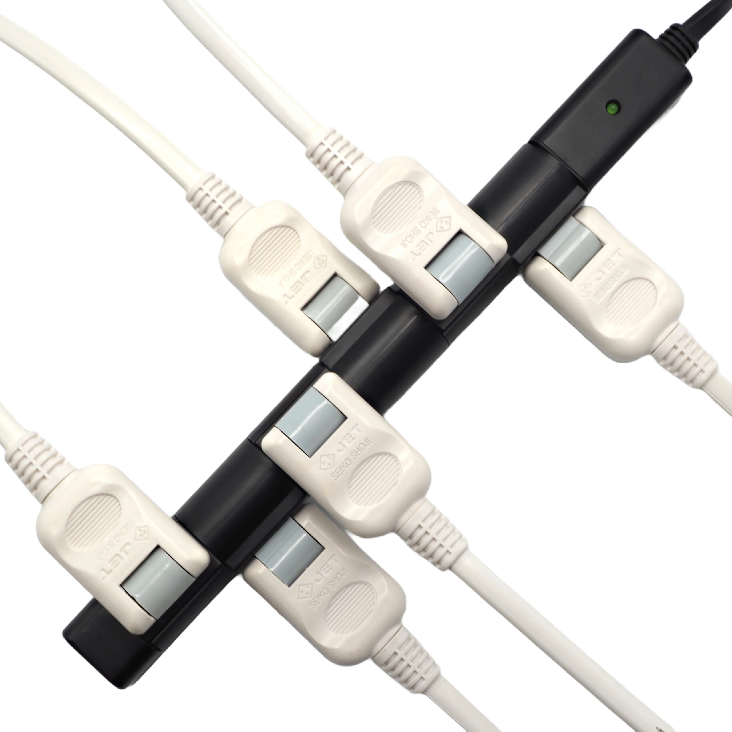 AC アダプター や USB 充電器を差し込んだ際、コンセントを回転させる事で隣のコンセントに干渉しない。