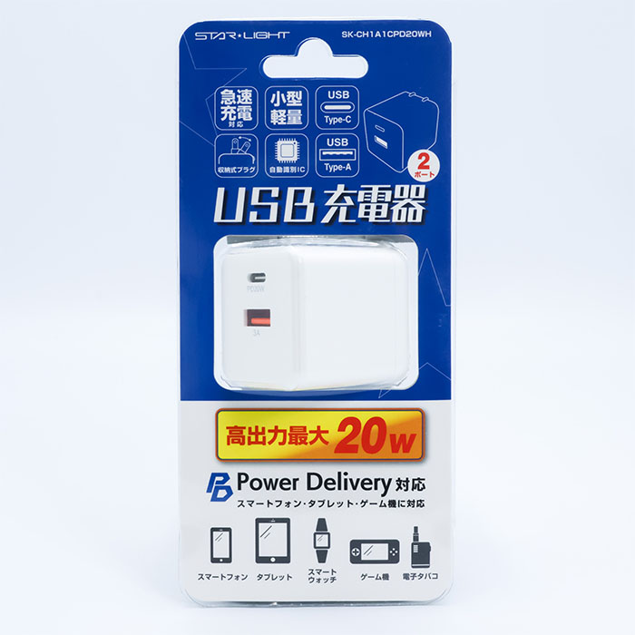 PD (Power Delivery) 20Wの高出力で、急速充電に対応