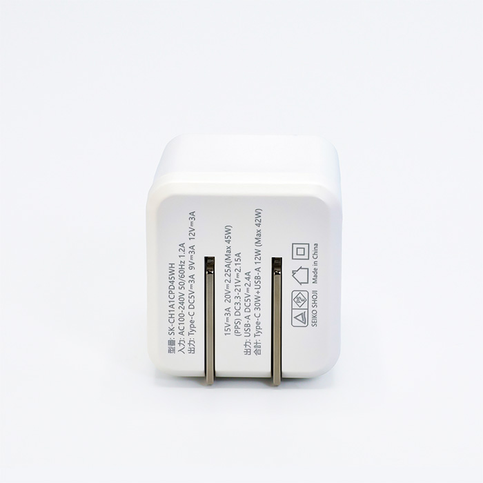 PD (Power Delivery) 45W、PPS(プログラマブルパワーサプライ)出力にも対応
