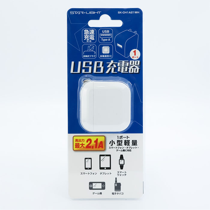 小型軽量で、ポート2.1Aの高出力で、急速充電に対応
